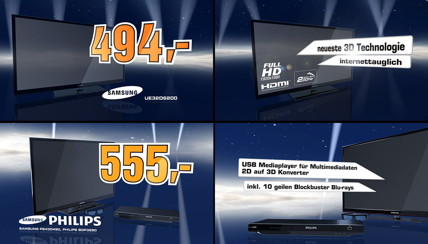 I created TV- and Promotion-spots for multitudes of companies. Here you can see a compilation of TV-Spots and animations made by me.